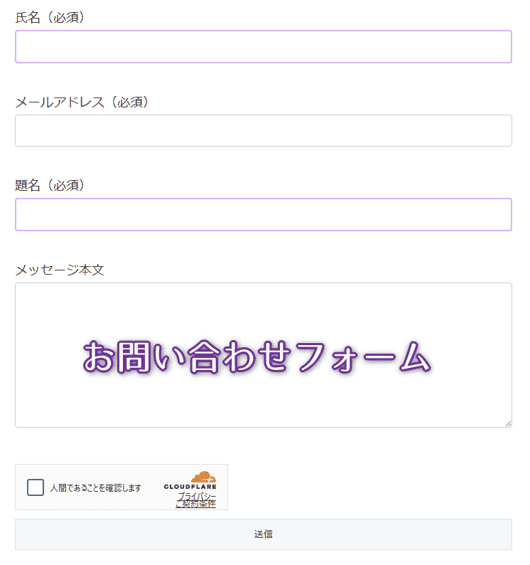 「お問い合わせフォーム」の設置が完了すると ↓ このように表示されます。
