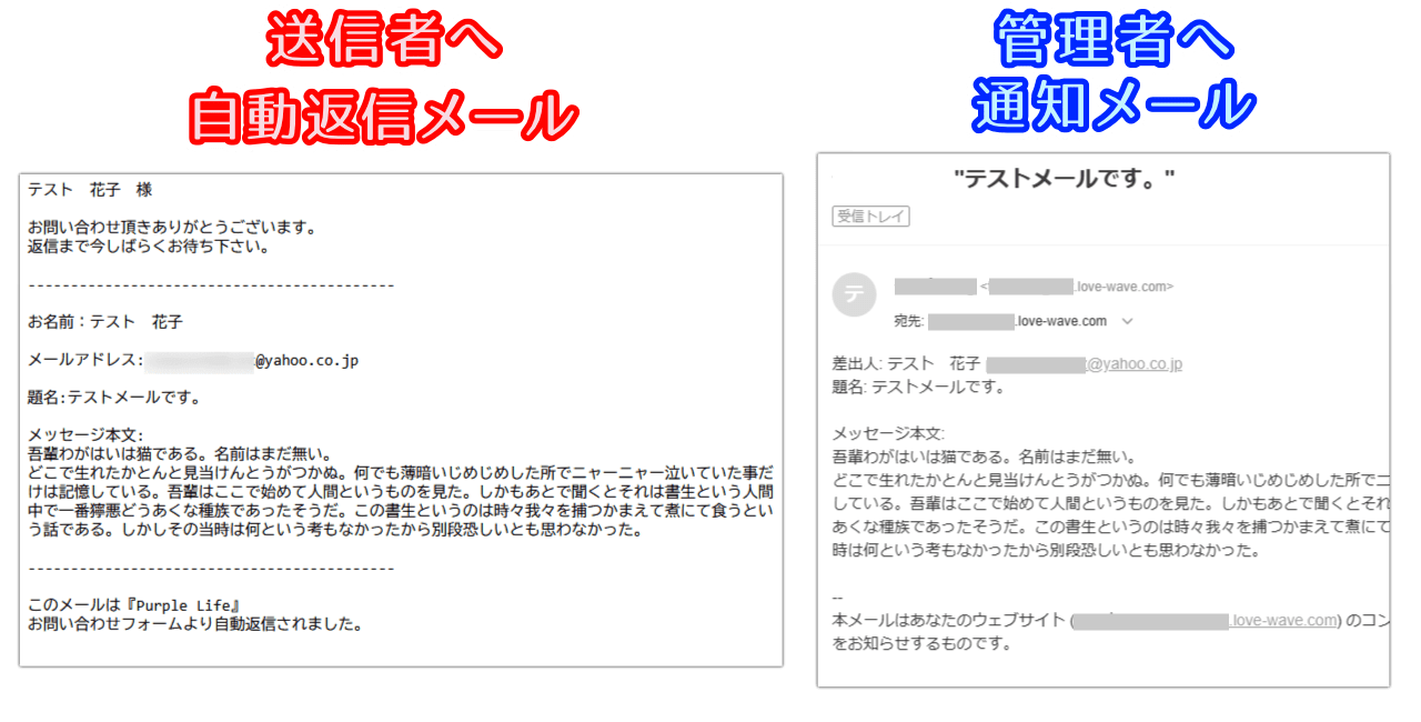 テスト送信で「通知メール」と「自動返信メール」が正しく受信できれば、設定は完了です。
