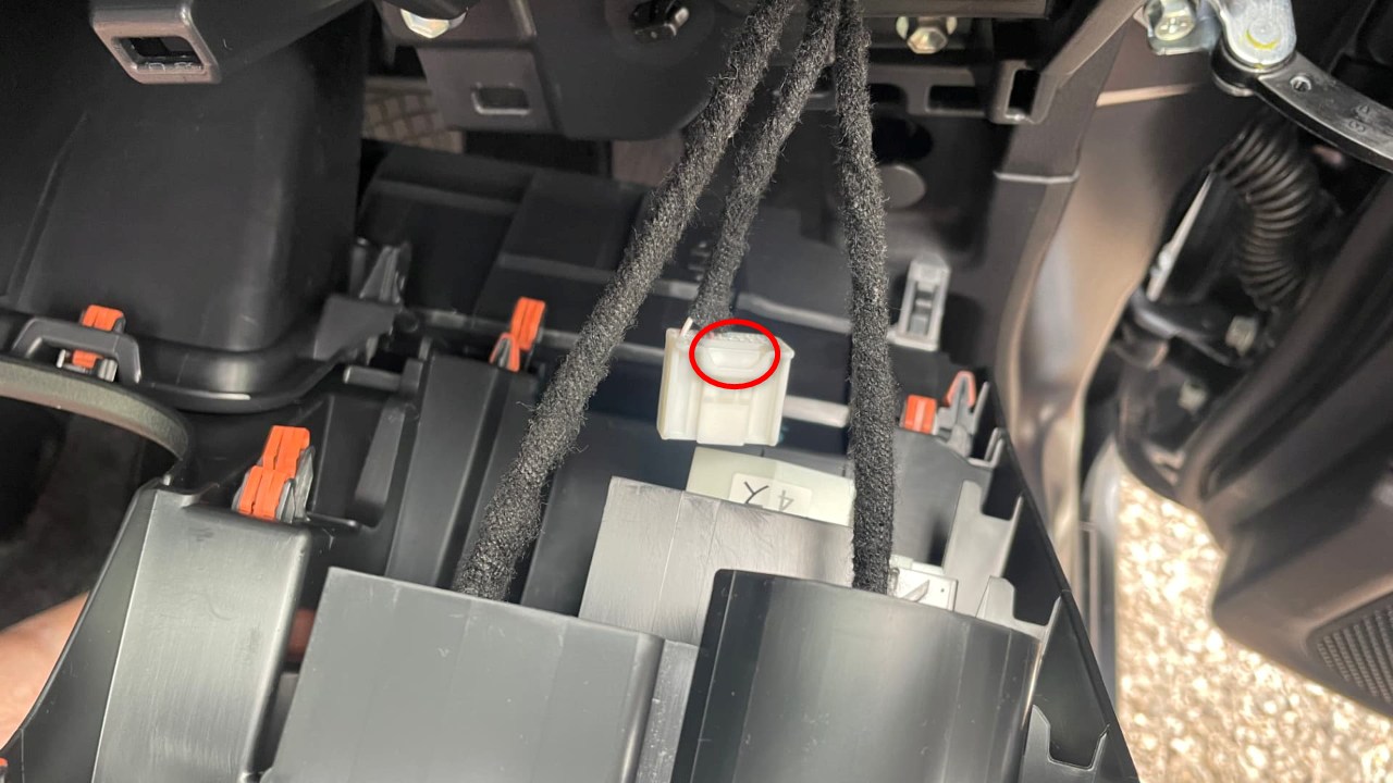 ④コネクターが見えてきたけど、このままでは作業がしずらいので、ハンドル下のパネルカバーも外す